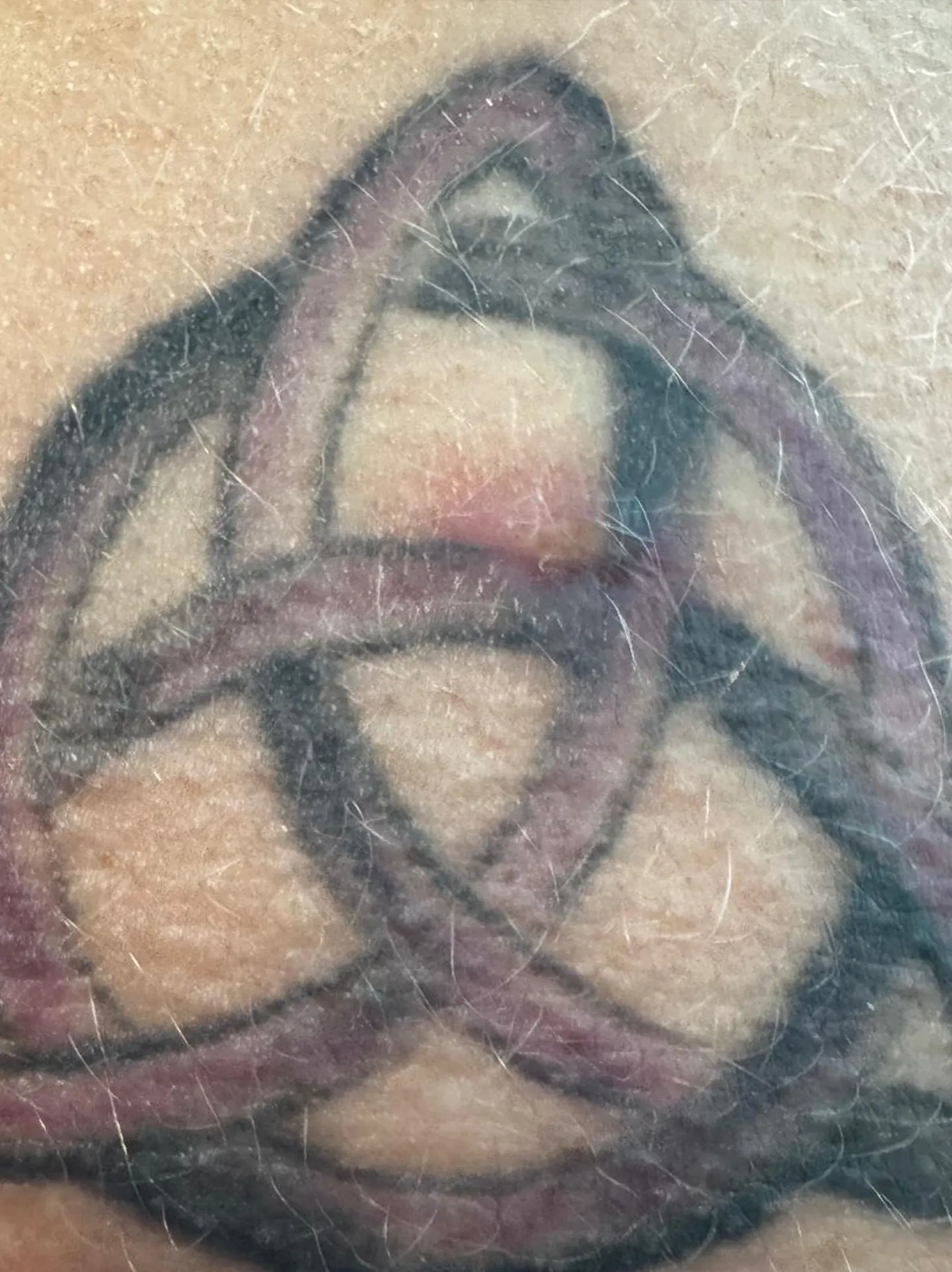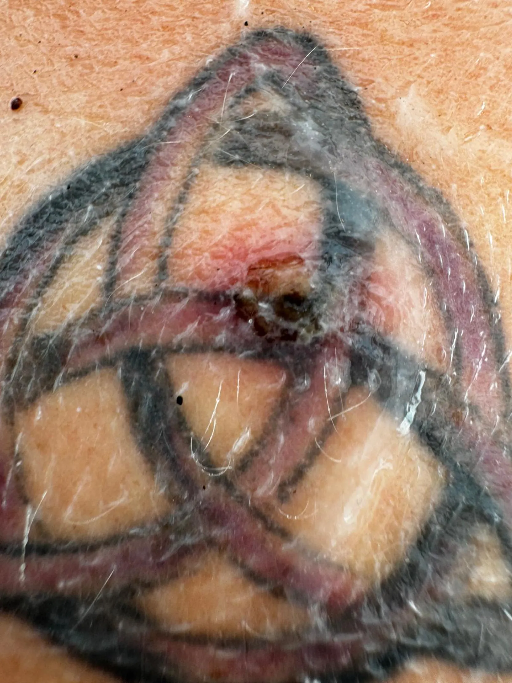 “I was out in the sun, I asked my GF to spray my back with SPF. She gasped when she spotted a big sore in the middle of my back and the center of my tattoo.